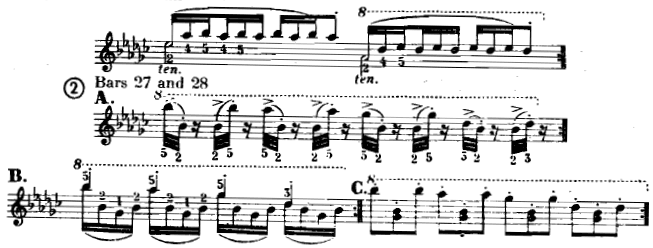 Ten sposób ćwiczenia jest najbardziej korzystny ze wszystkich, które proponuję, aby osiągnąć perfekcyjne wykonanie tej Etiudy, ale pełny rezultat osiągniemy pod warunkiem, że powyższa formuła będzie opanowana po mistrzowsku.